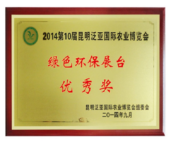 2014第10屆昆明泛亞國際農(nóng)業(yè)博覽會獲獎證書