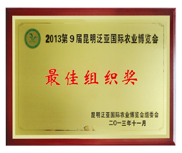 2013第9屆昆明泛亞國際農(nóng)業(yè)博覽會獲獎證書