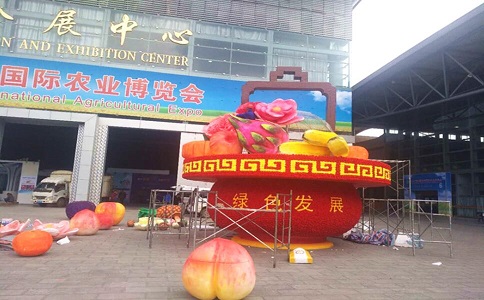 主要材料:鋼架、泡沫、丙烯、鮮花、瓜果、仿真花,寫真,播音軟貼。